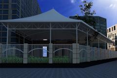 柱、梁安装时我们要检查柱底板下面的垫铁是否有垫实、垫平柱是否垂直与位移梁的垂直、平直侧向弯曲、螺栓拧紧的程度及摩摞面清理,验收合格以后方可起吊。当景观膜结构中的钢构安装构成了空间固定单元,并经验收合格以后,要求施工方把柱底板与基础顶面的空间用膨胀混凝土进行二次浇筑密实。